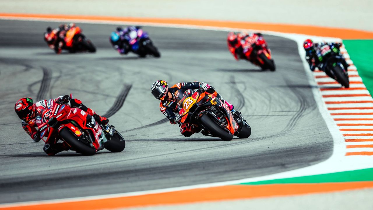 As we went sprinting one last time this season, it was Alex Marquez who took the lead while Pedro Acosta went to 2nd from 5th at lights out, and poleman Marco Bezzecchi was in 3rd. From 20th on the grid, Enea gained 1 position in the opening lap, and his ascension continued on lap 2 as 4 more positions were gained to enter lap 3 in 15th behind Alex Rins. Bastianini was quick to overcome the Yamaha rider, to sit in 14th after 4 laps. Teammate Maverick Viñales was excited to line up on the grid for the first time since the Japanese Grand Prix. From 21st, the Spaniard kept his position at the lights out, and the double crash of HRC duo Mir-Marini saw him sit in 19th after 2 laps, and Jorge Martin going wide at the next lap meant 18th for Top Gun. Three laps into the sprint, just 0.145 seconds separated Bastianini from his ex-teammate Francesco Bagnaia, but the Ducati rider closed all possible doors as Bestia eased things down, and the gap grew bigger. Halfway through, Alex Marquez led Acosta by 1,5 seconds, and next there was Raul Fernandez in battle for 3rd against a pressuring Fabio Di Giannantonio. Viñales focused on his pace, as the main focus was to get back to it, and Top Gun crossed the line in 18th. A bit more ahead, teammate Bastianini had found the extra strenght to come back on his ex-teammate to sneak into the 13th place in the final seconds. Good progression once again by the Italian, who will be keen to do more laps on the long distance on Sunday, as lights will go out one last time at 14:00 local time, for 27 laps!